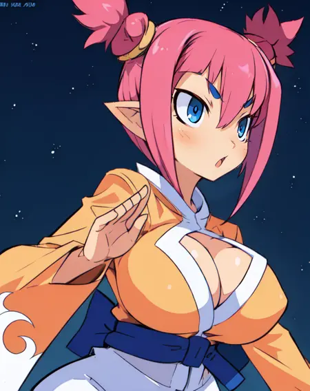 FightMistress, 트윈테일, 파란 눈, 분홍색 머리, 짧은 머리, 뾰족한 귀