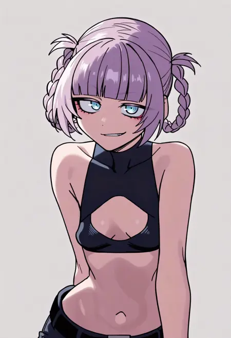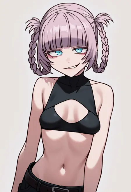 基础提示词:1girl, nazuna, pink hair, ringed eyes, short hair, blunt bangs, blue eyes, braid, hair rings