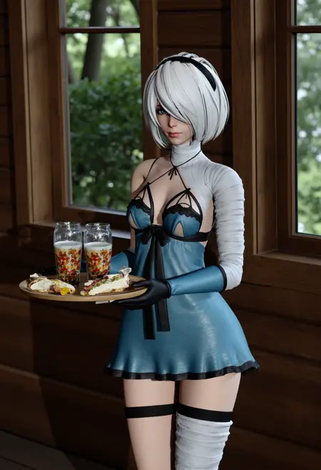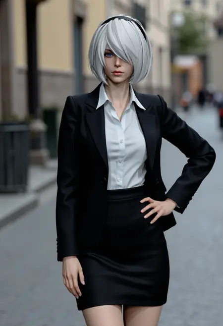 忠实还原《尼尔:自动人形》中2B的原版游戏形象,主要聚焦于面部,因此本版本未提供眼罩选项。权重范围0.65-0.9效果最佳。可通过“black skirt”和“white leotard”提示词切换有裙与无裙版本。强烈推荐配合Adetailer和Hires.fix使用,可极大降低面部崩坏风险。由于训练集中仅包含一套服装,若要更换服装,需使用LoRA块权重插件降低对应权重。