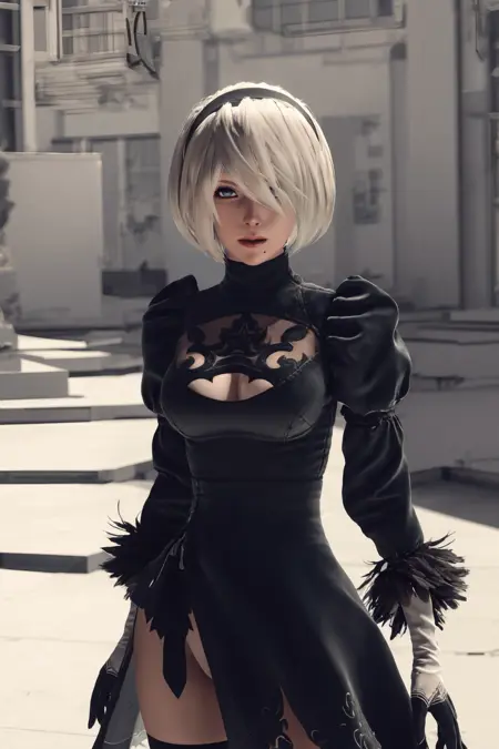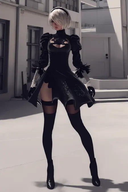 忠实还原《尼尔:自动人形》中2B的原版游戏形象,主要聚焦于面部,因此本版本未提供眼罩选项。权重范围0.65-0.9效果最佳。可通过“black skirt”和“white leotard”提示词切换有裙与无裙版本。强烈推荐配合Adetailer和Hires.fix使用,可极大降低面部崩坏风险。由于训练集中仅包含一套服装,若要更换服装,需使用LoRA块权重插件降低对应权重。