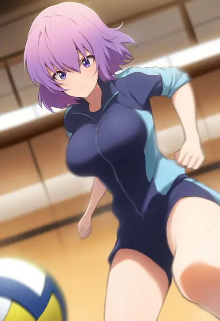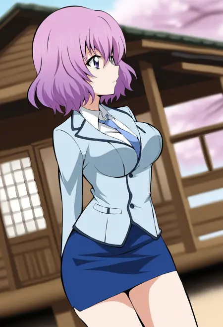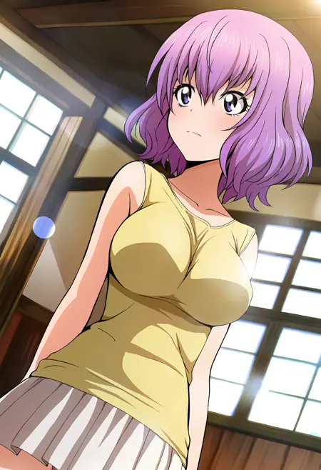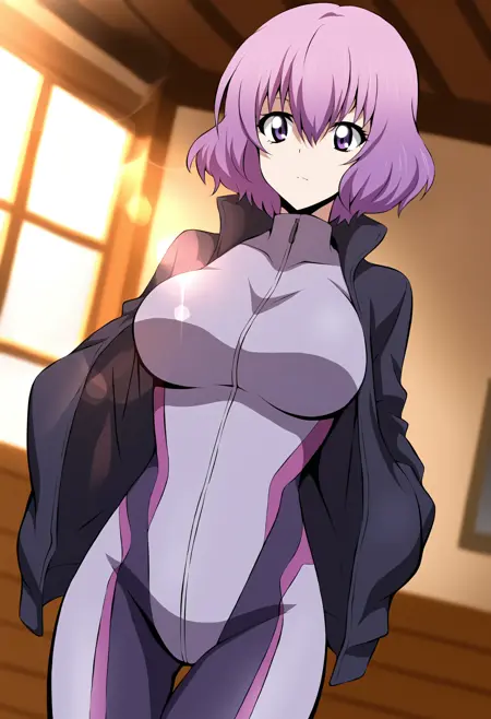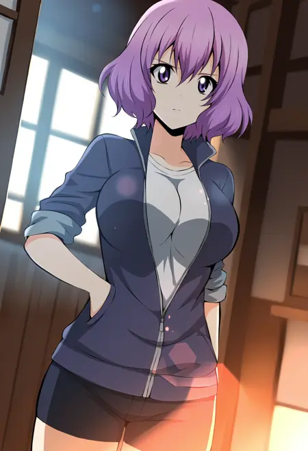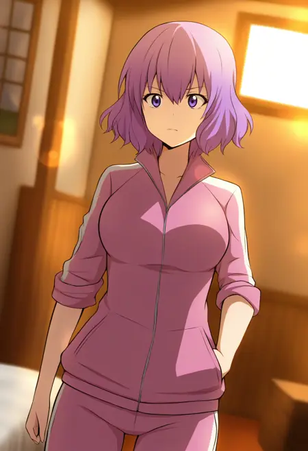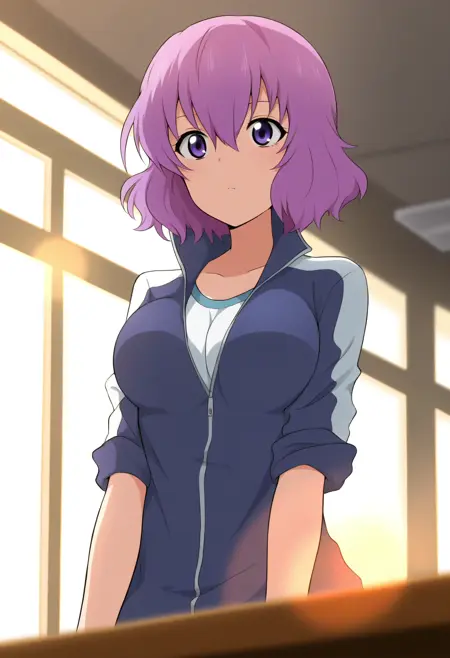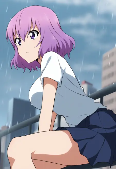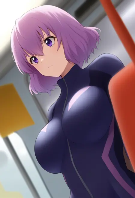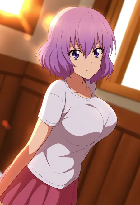 外观 → ohwx, 短发, 紫发, 紫眼, 1女孩, 乳房, 大乳房, 中等乳房, 粉发,