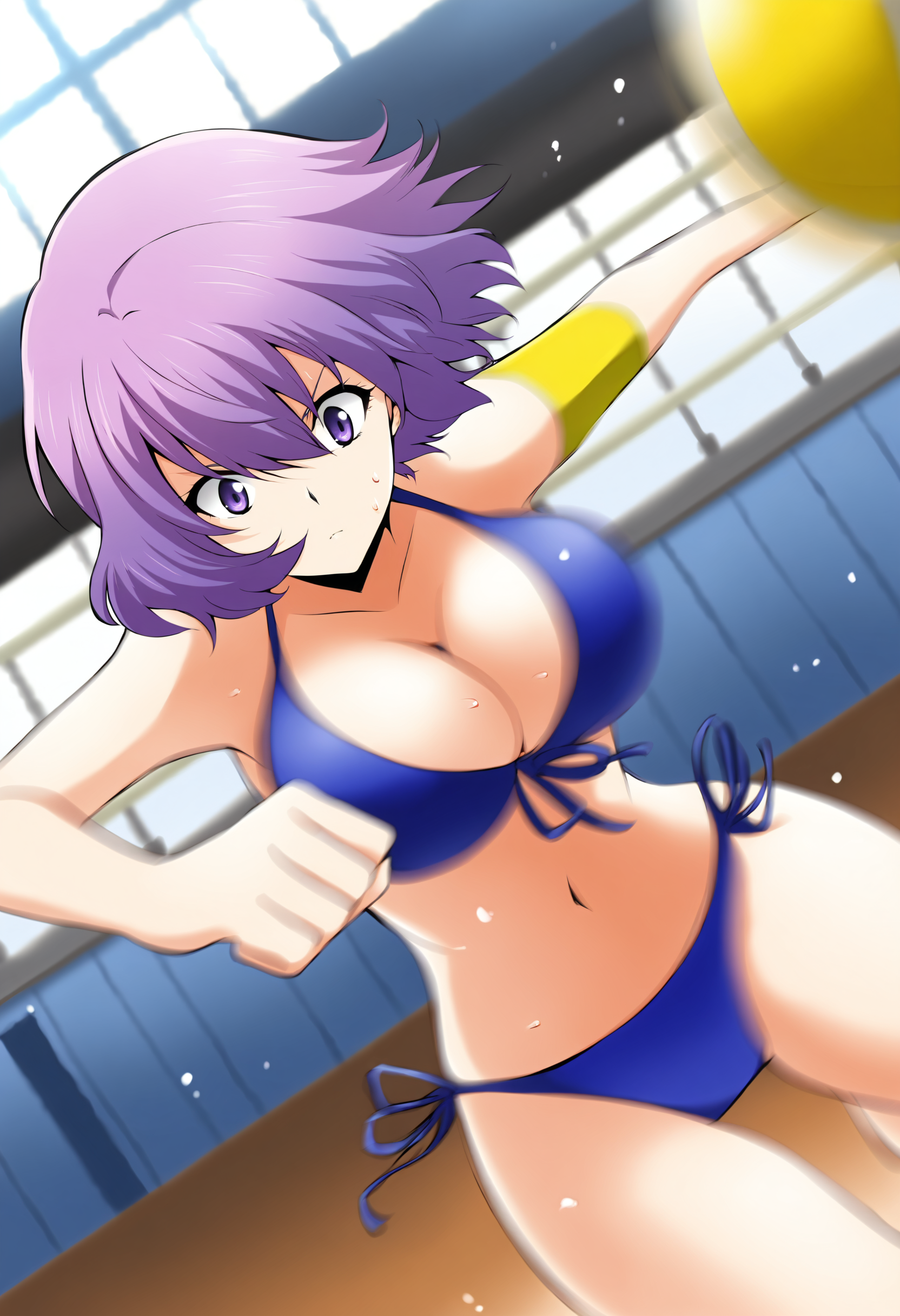 服装1 → 泳装, 比基尼, 侧系比基尼下装, 肚脐, 胸部显露, 手臂装饰, 蓝色比基尼,