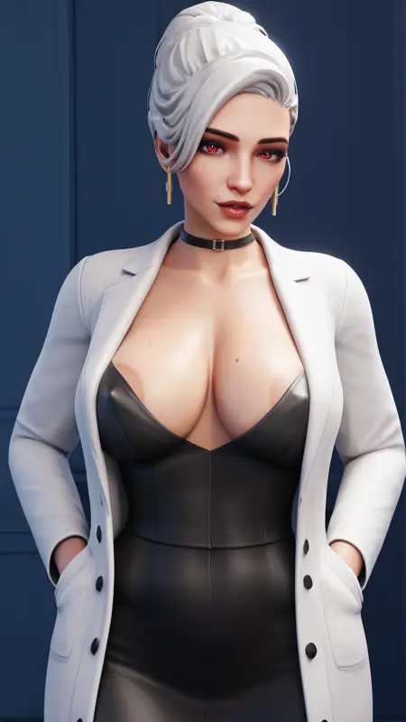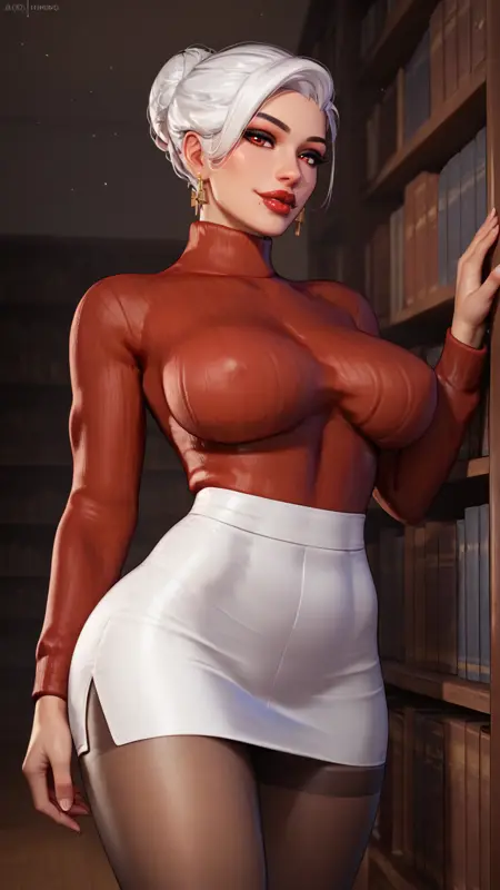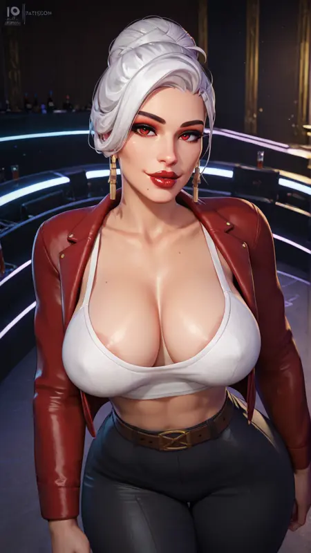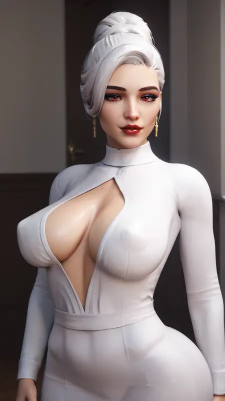 분위기 태그: 하얀 머리, 빨간 눈, 단발, 회색/하얀 머리, 빨간 입술, 립스틱, 한 줄의 머리카락으로 땋은 단발