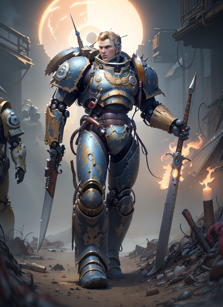 Trained on 42 images in of Rowboat Girlyman this LoRA is capable of convincingly reproduce the lord of ultramar.
