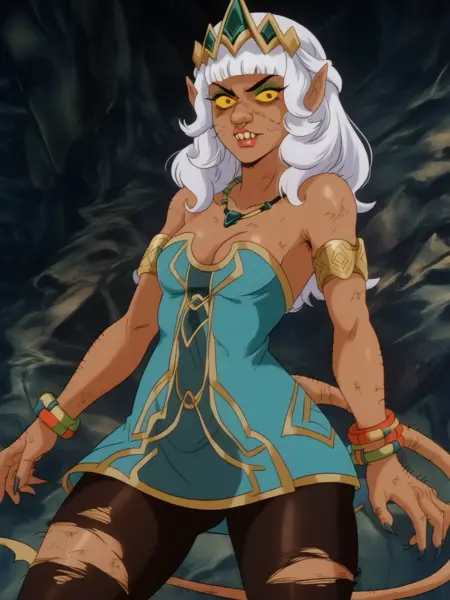네거티브에 _rope, planeteer_를 사용하면, 이 애니메이션의 캐릭터에서 발생하는 학습 노이즈를 제거할 수 있습니다.