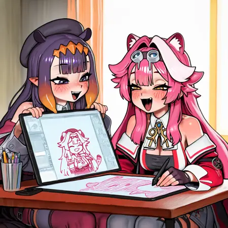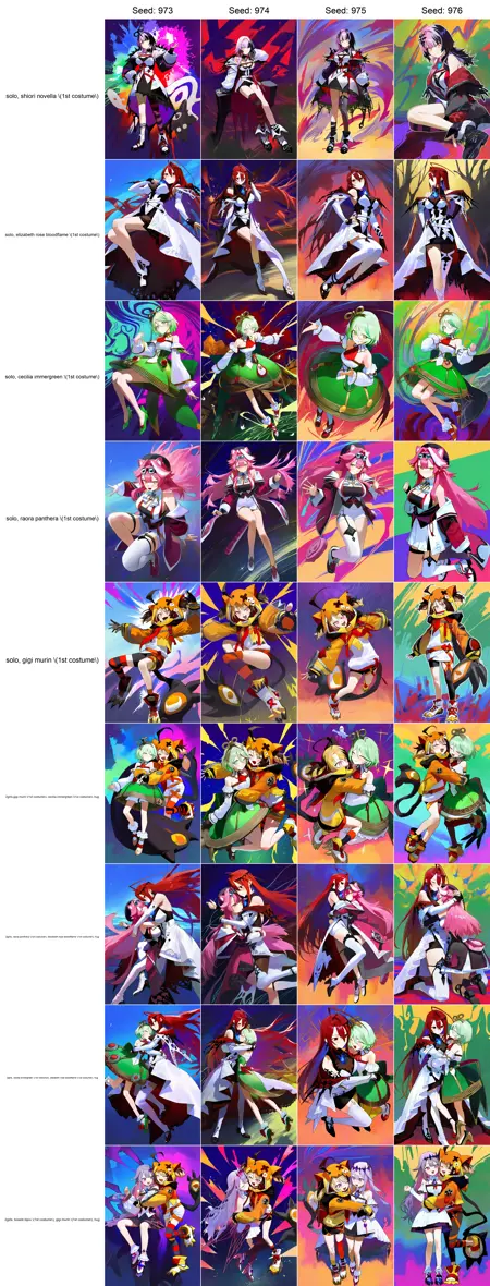 흥미롭게도 이 LoRA는 Justice 소속이 아닌 한 캐릭터를 포함한 2명의 소녀를 잘 생성할 수 있지만, 이 능력은 더 많은 캐릭터로 확장되지 않는 것으로 보입니다.