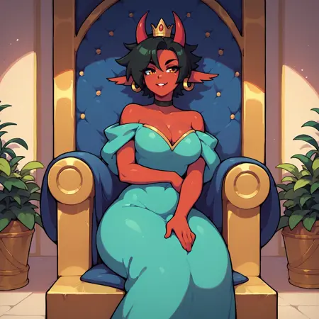 This model produces the Gigi Goat character I've been posting. Her character design was derived from this one image: https://civitai.com/images/23804467 That image came from an unreleased Pony model trained on this Woot character: /model/376499/woot-succubus