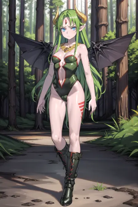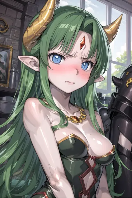 The activation tag is feliss, and you will probably want: parted bangs, red forehead jewel. demon wings and demon tail also need to be prompted, but the AI has trouble with them from certain angles, so just omit them when neccessary.