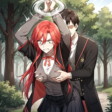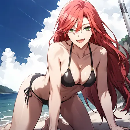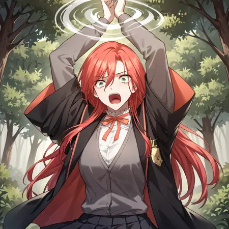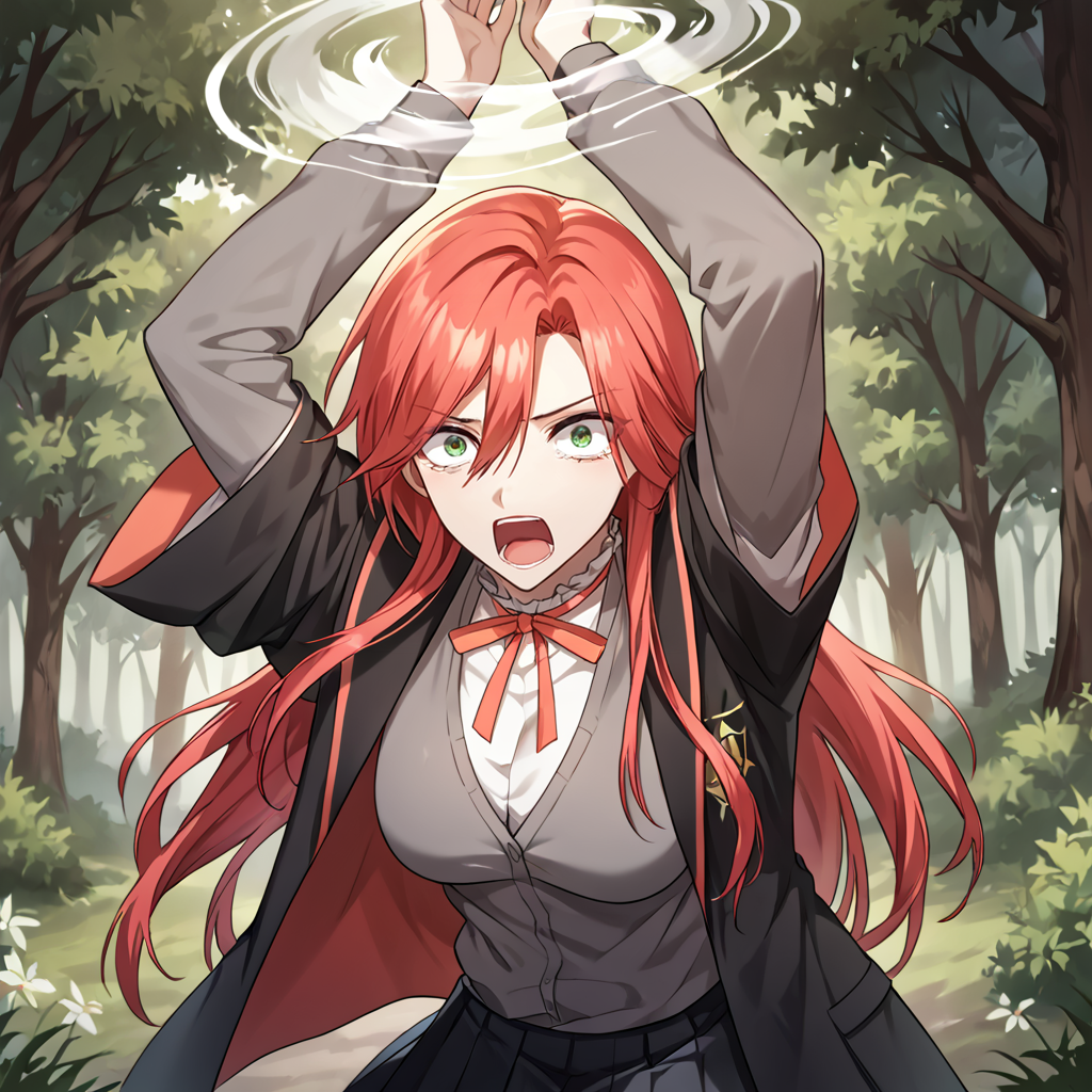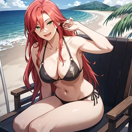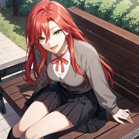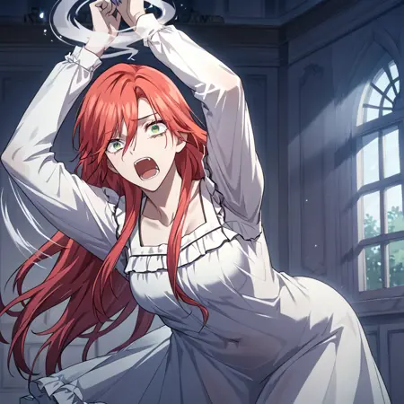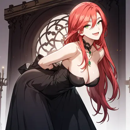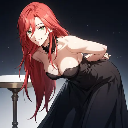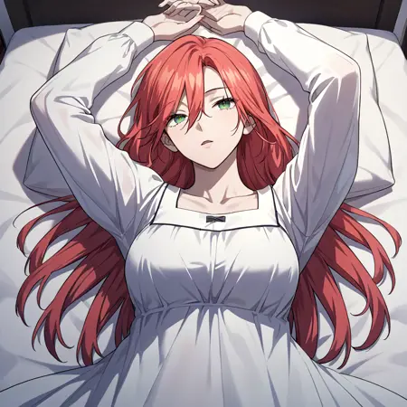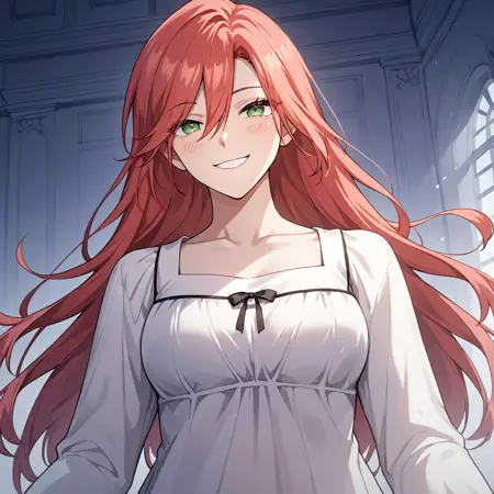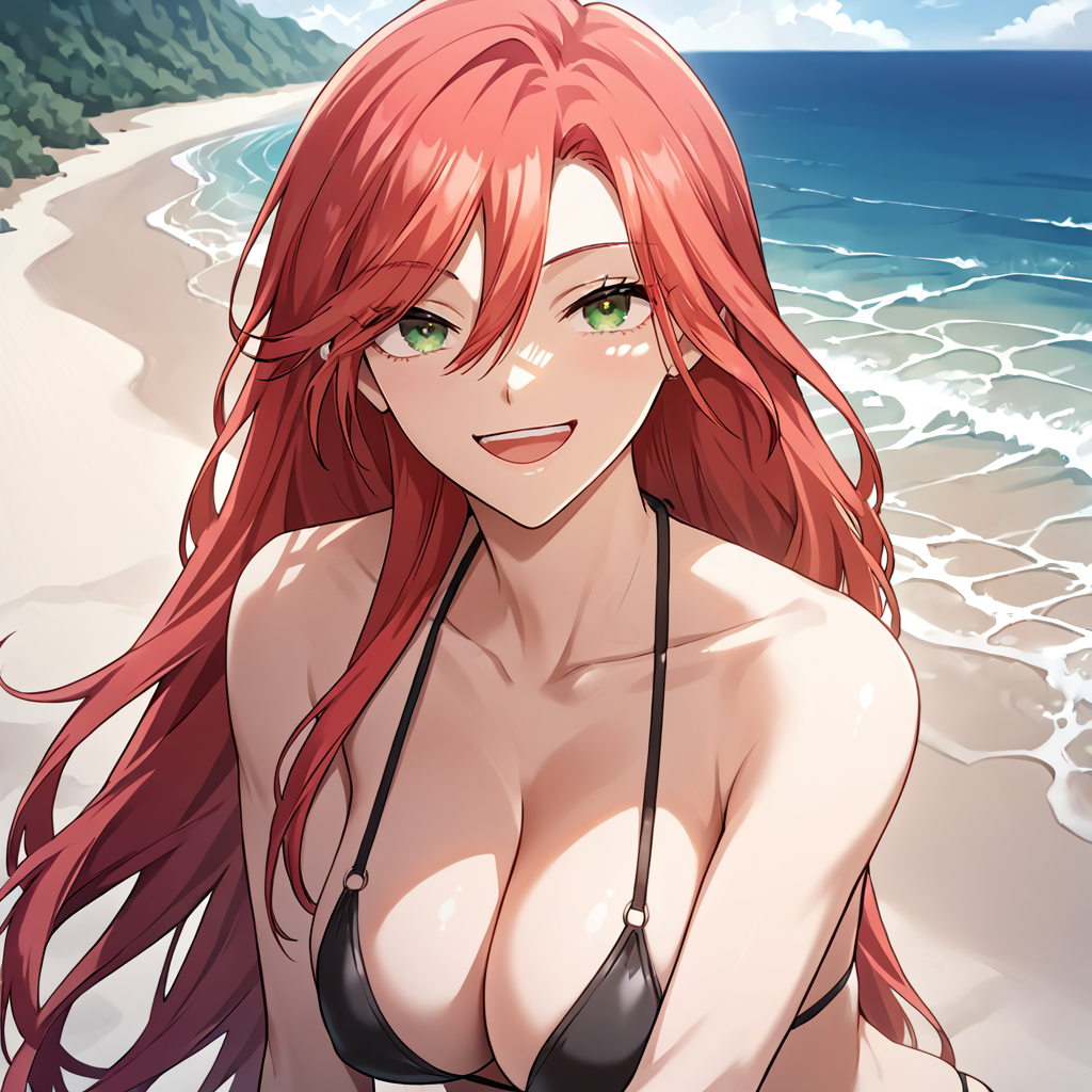 amy_karmis, 緑の目, 赤髪, 長髪, 前髪, 目の間の髪, 胸,