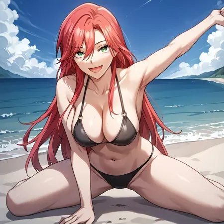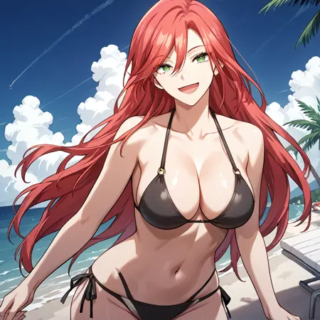 amy_karmis, 녹색 눈, 빨간 머리, 긴 머리, 앞머리, 눈 사이의 머리카락, 가슴,