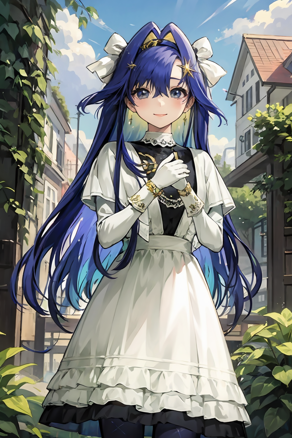 不需要提示词,如果衣服不精准可以差哪儿补哪儿,比如white dress(白裙子)Gloves(手套),拉小提琴比较困难,这个姿势太复杂AI生成效果不好,更换衣服需要降低权重(建议0.7左右),并且提高指定衣服的权重(建议1.25往上)
