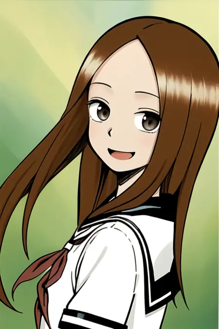 TakagiSanFirstStyle,棕色头发,棕色眼睛,齐刘海,额头,校服