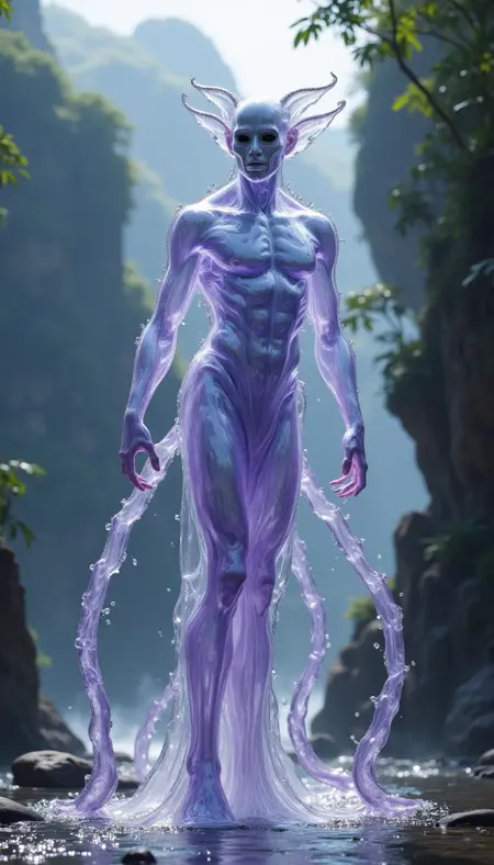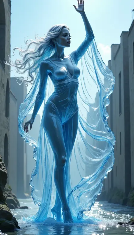 这是一个帮助创建女性、男性、生物和动物风格的模型,使它们看起来像是由水构成的。我在提示时几乎未关注环境,如果你希望图像更具多样性,可以适当增加对环境的重视。