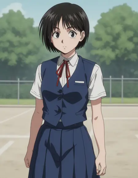 nakamura asako, black hair, short hair, bob cut, black eyes