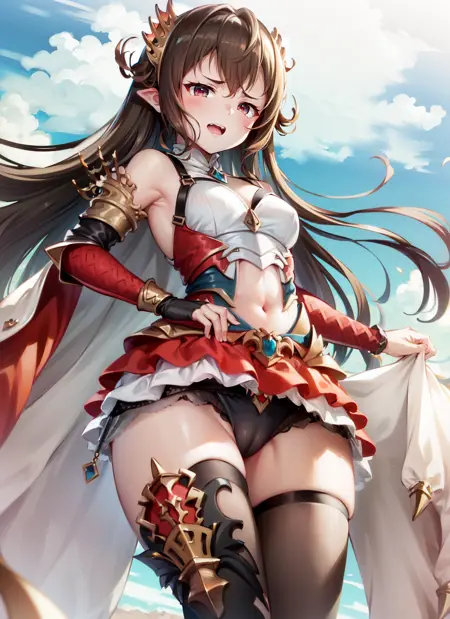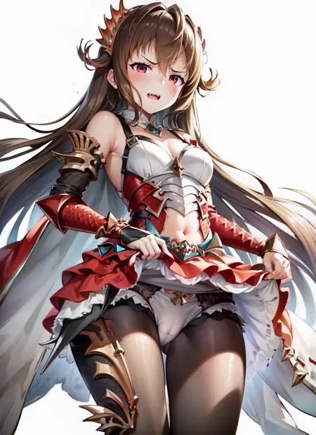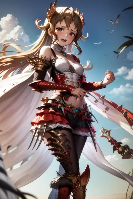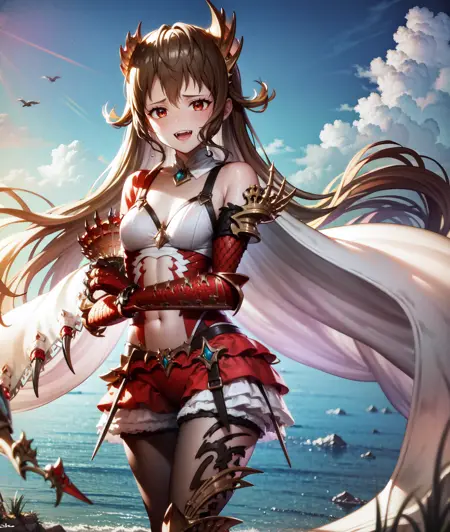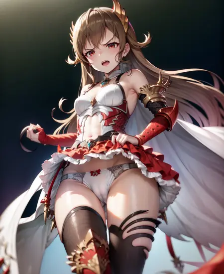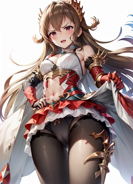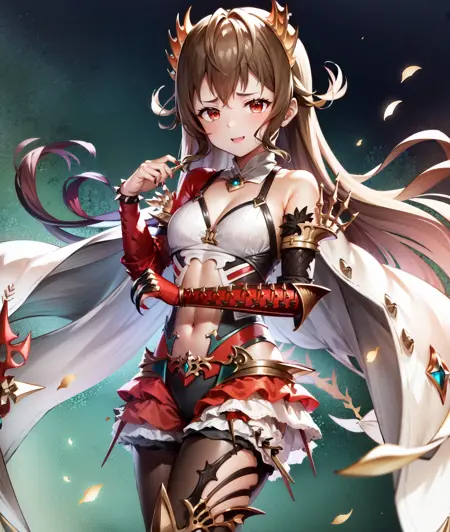 | 训练词汇 | long hair, breasts, bangs, 1girl, brown hair, hair ornament, medium breasts, solo, red eyes, smile, cleavage, very long hair, dress, bare shoulders, jewelry, skirt, gauntlets, detached sleeves, armor, blush, hair between eyes, her skirt has spikes, her armored dress is dragon themed, her single large gauntlet is a weapon shaped like a dragon claw, 1girl, breasts, armlet, spiked armlet, crown, bangs, ((armor)), skirt, ((single gauntlet)), weapon, dress, blush, (white cape), (cape), frills, long hair, brown hair, red eyes, navel cutout, bare shoulders, (detached sleeves), clothing cutout, very long hair, [red skirt], ((red dress)), [miniskirt], cowboy shot, hair ornament, ((small breasts)), torn legwear, ((single glove)),white cape, tattered cape, bracelet, jewelry, [boots], [greaves], [armored boots, knee boots], cleavage cutout, center opening, gem, sidelocks, hair between eyes, v-shaped eyebrows, tsurime, [[arm guards]], spikes, [scales,] swept bangs, (layered skirt), frilled skirt, frilled dress, layered dress, metal armor, red metal, (armored dress), [breastplate], thighhighs, black thighhighs 已复制! |