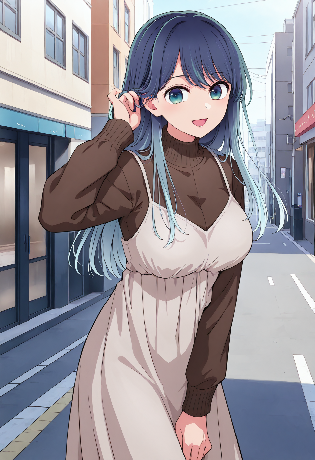 kurokawaakane, blue hair, aqua eyes, gradient hair, breasts,