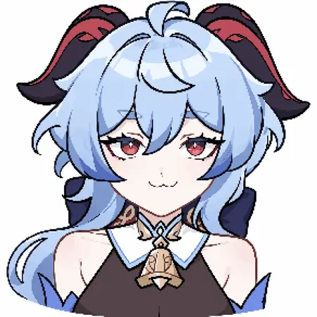 例プロンプト: very aesthetic, newest, best quality, masterpiece, absurdres, 1girl, ganyu (genshin impact), smile, upper body, white background