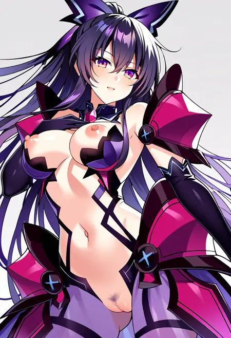 逆形态提示词: DALTohka,逆形态狂三,紫色头发,深紫色头发,长发,肚脐,暴露的服装,腹部,发结,紫色眼睛,盔甲礼服,黑暗人格,肘部手套,盔甲,紫色礼服,紫色盔甲