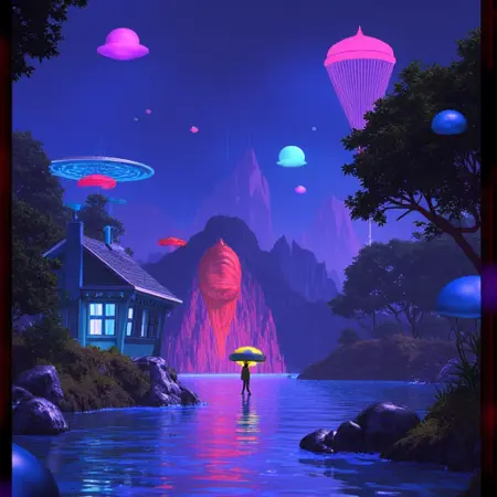 실리콘 드림스는 플럭스 모델 전용으로 제작된 특화된 LoRA로, 1980년대~1990년대 컴퓨터 생성 이미지의 초현실적이고 화려한 세계를 불러일으키도록 설계되었습니다. 레트로-퓨추리스틱한 시각에서 영감을 받아, 이 LoRA는 화려한 색채, 인체 형태를 띤 캐릭터, 익숙하면서도 환상적인 기술적 모티프로 가득 찬懷舊적인 디지털 꿈의 풍경을 살아나게 합니다. 신고전주의 포스트모던, 다이너 킷슈, 에어브러시 초현실주의, 그리고 초기 사이버 미학의 요소들을 융합한 "실리콘 드림스"는 디지털 공간의 가능성을 탐색하기 시작한 시대의 기이한 낙관주의와 호기심을 포착합니다.