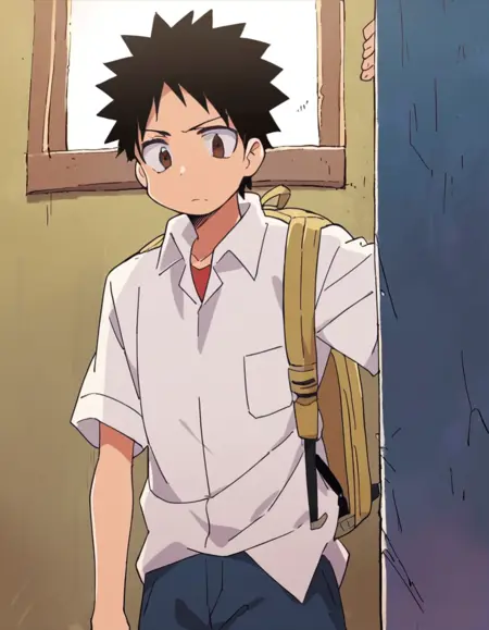설명: 검은 머리, 갈색 눈, 뾰족한 머리카락