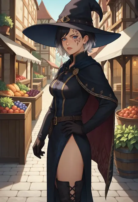 KJOpawn, 단발, 검은 머리, 다색 머리, 파란 눈, 얼굴 문신, 팔 문신,