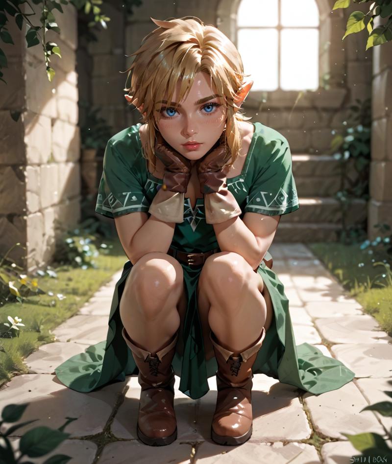 トリガーワード: 1guy, femboy, 青い目, femboy_link, 緑のドレス, ベルト, 金髪, グローブ, ブーツ, lora:Femboy\_Link:0.75 - 私は0.75の強さを使用しましたが、より高い数値で試しても構いません