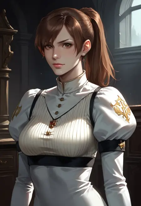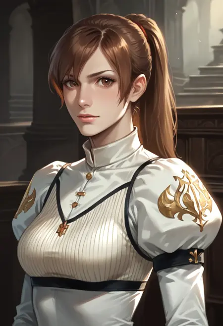 《鬼泣4》中的琪莉耶。她是我们的主角尼禄的恋人和被囚禁的少女,在《鬼泣5》中短暂但重要地出现了音效登场。希望未来能再次见到她。