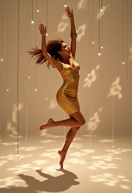 PROヒント: キーワードに「golden」を追加することで、モデルに適切なゴールデンメタリックなドレスを生成させる必要がある場合があります。