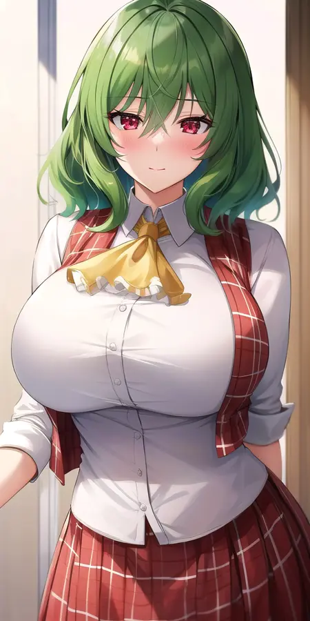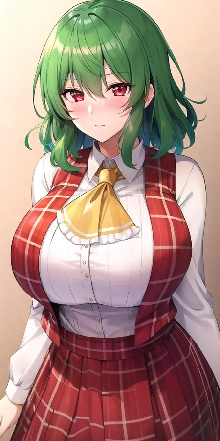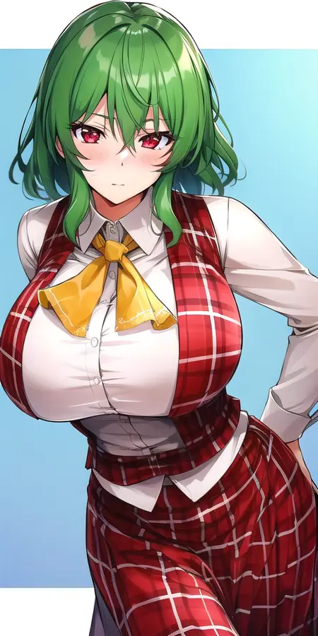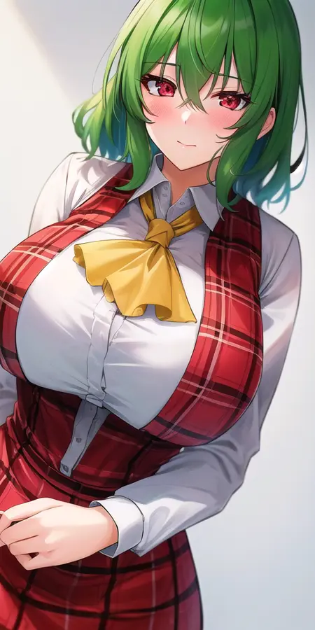 - YuukaRedPlaidOutfit(彼女のデフォルトの赤チェック柄のベストとスカート)