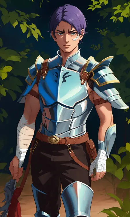 尾形モデル:キーワードを入力しないと長髪、キーワードを入力すると後れ髪になります。素材の関係で髪の色は紫めですが、black hairと入力して髪の色を修正できます。