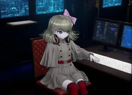 更扁平化的小松崎璐风格(即更接近《弹丸论破》的风格,效果不佳):"弹丸论破像素风格。"