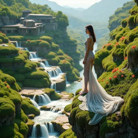 3. "꽃무늬 바디페인팅을 한 모델을 묘사하세요. 꽃잎과 덩굴이 자연스럽게 인물 주변을 흐르며 몸과 부드럽게 융합된 우아한 디자인을 이루어야 합니다. 각 꽃은 생생하고 사실적으로 보이며, 셀 쉐이딩과 아크릴 스타일의 질감을 혼합하여 자연스럽고 유기적인 아름다움을 강조해야 합니다."