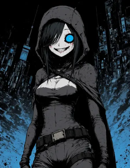 このLoRAは、鮮明なコントラスト、不気味な表情、そして不吉な神秘感を特徴とするサイバーパンクホラー anime の美的感覚を捉えています。主な特徴は以下の通りです: