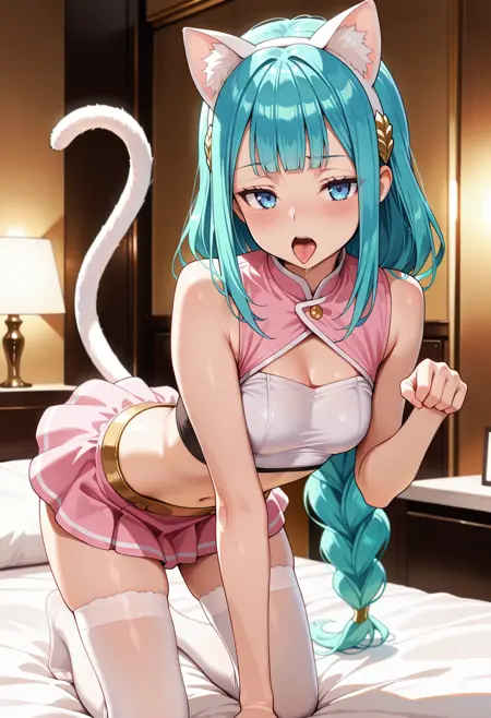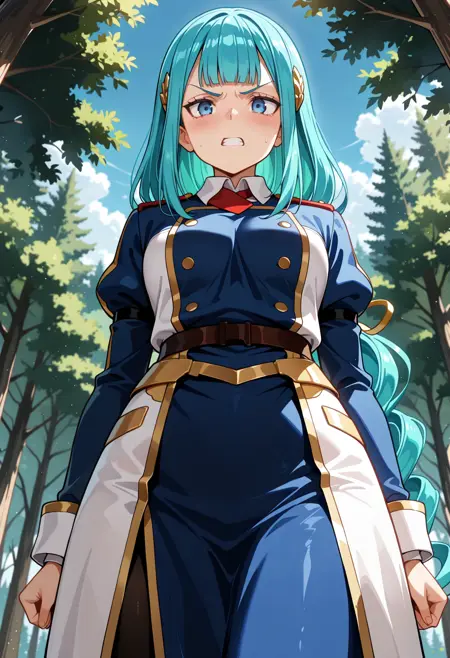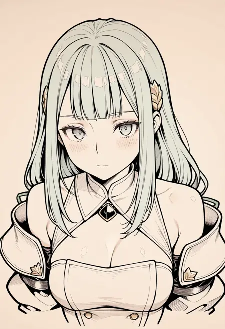 white skirt, sheath, black thighhighs,belt, boots, white capelet, scabbard,