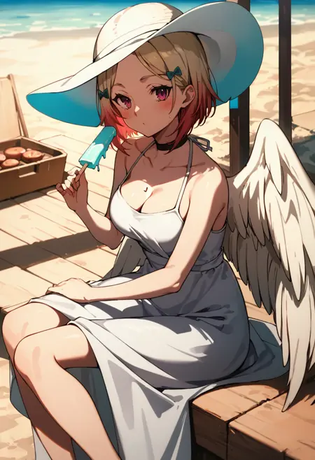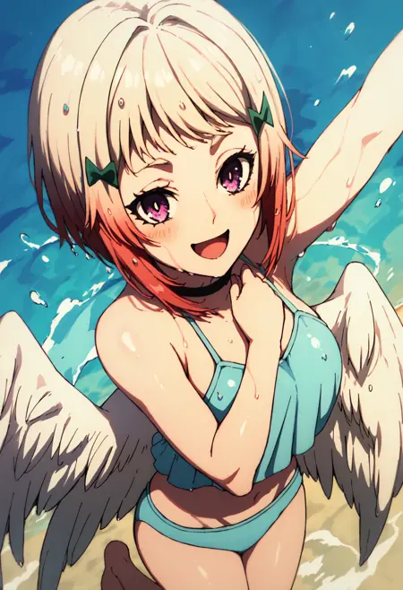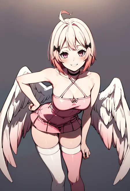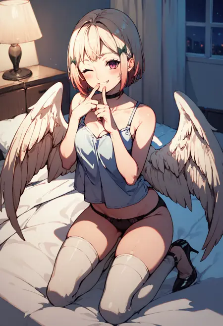hood down, black gloves, single fingerless glove, single elbow glove, black shorts, short shorts, black thighhighs, black choker, blue shirt,