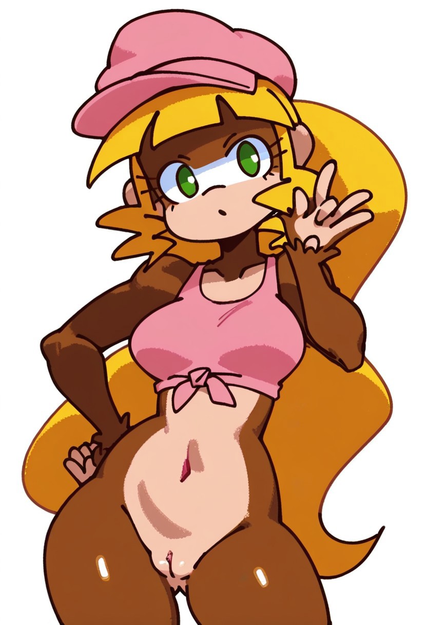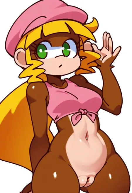 Aight I messed up a bit but u have to add tags like "blond hair, pink hat, pink crop top" if u want exactly the original design. I think it should be enough. I didn't try models other than pony v6 so idk what can be the result.