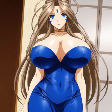 Had nice results with: Belldandy, blue_eyes, brown_hair, (facial_mark:1.3), lora:Belldandy:.45