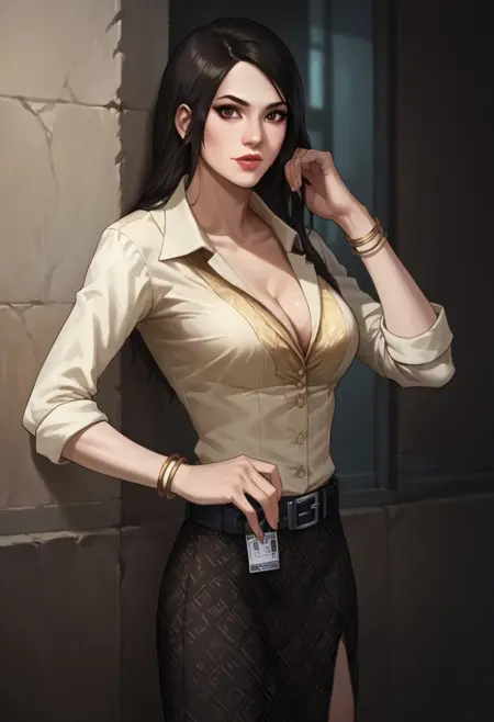 rebeccaDR, black hair, long hair, brown eyes, mole, makeup, lips,