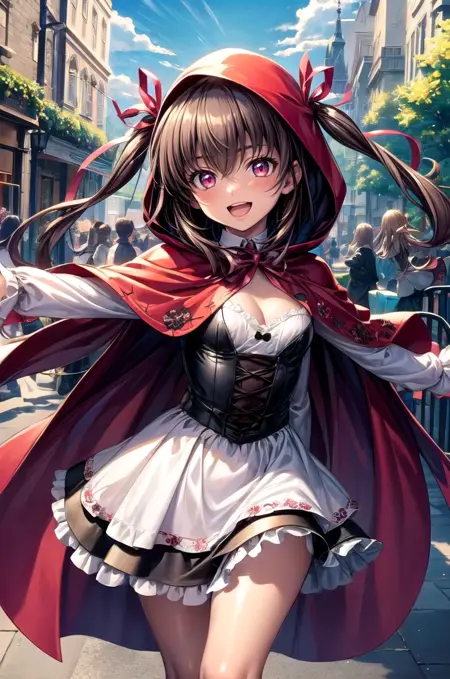 レッド衣装 - mizuki yukikaze、ヘアリボン、レッドレオタード、肘手袋、レッド手袋、ショーガールスカート、ハイレグパンツ、レッドシンクス、太ももブーツ - ブラックボディスーツやへそが覆われているような要素をネガティブに追加すると助けになる。
