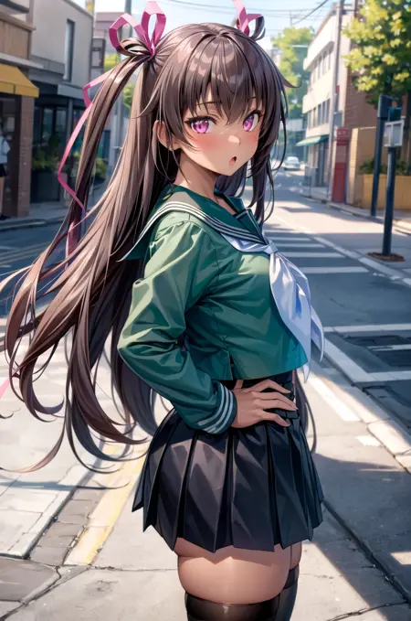 普段着 - mizuki yukikaze, hair ribbon, one-piece tan, completely nude - 白いワンピース水着をネガティブプロンプトに追加すると役立ちます。肌の日焼け跡が水着のように見えるため、モデルはしばしば輪郭を追加してしまいます。