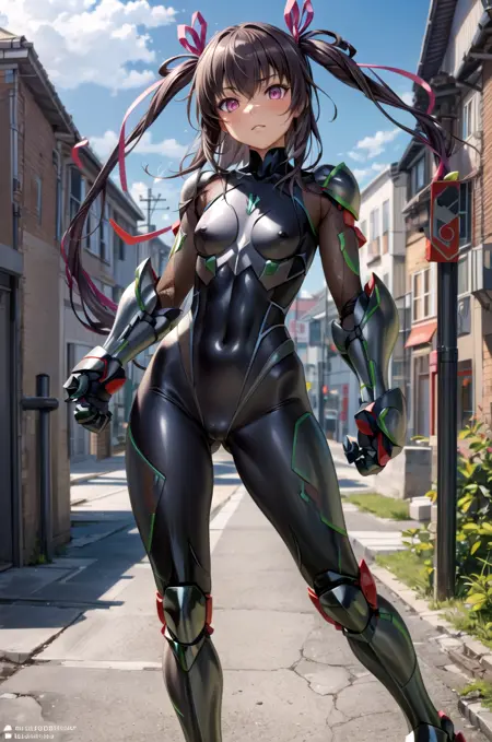 アーマードボディスーツ - mizuki yukikaze、ヘアリボン、ブラックボディスーツ、フィッシュネツ、パウルドロン、ゲンテレット、アーマードブーツ