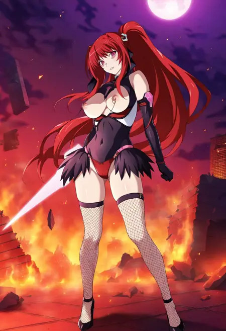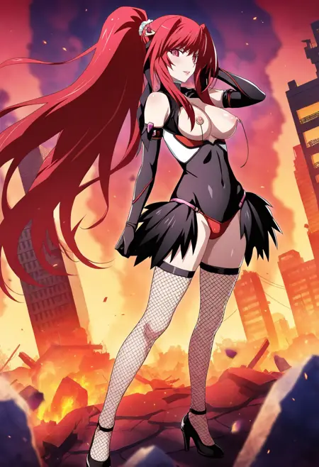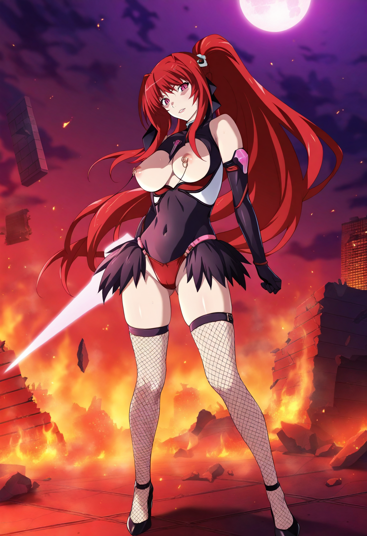 기본 프롬프트: 1girl, blackescalayer, long hair, red hair, ponytail, slit pupils, pink purple eyes
