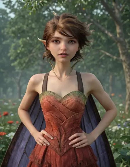 来自《奇异魔法》的玛丽安。我刚看完这部电影,很喜欢。我尝试让蓝花生效,但可惜没成功。它仍然在LoRA中,你或许会幸运地成功。如果我做v2版本,我会尝试让花朵生效。