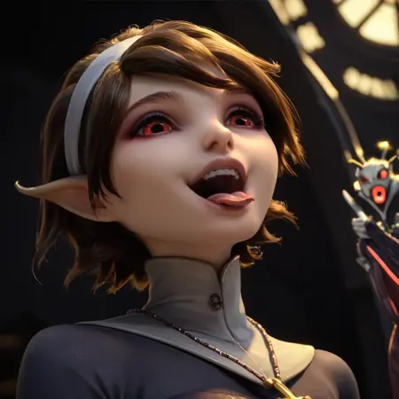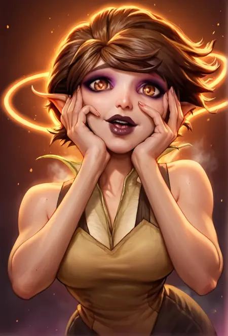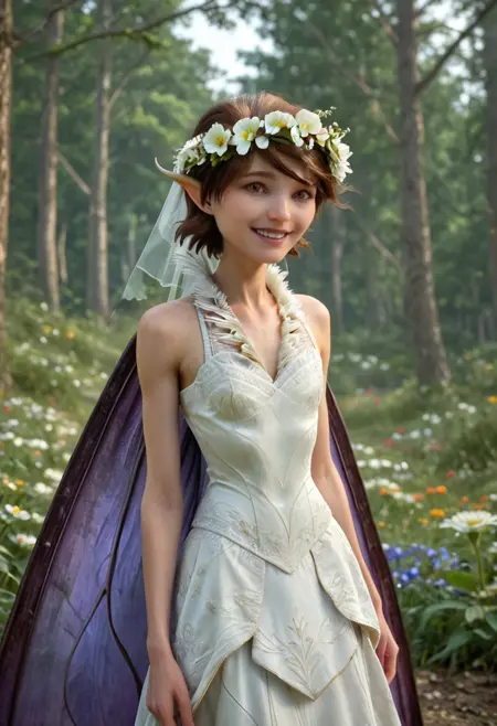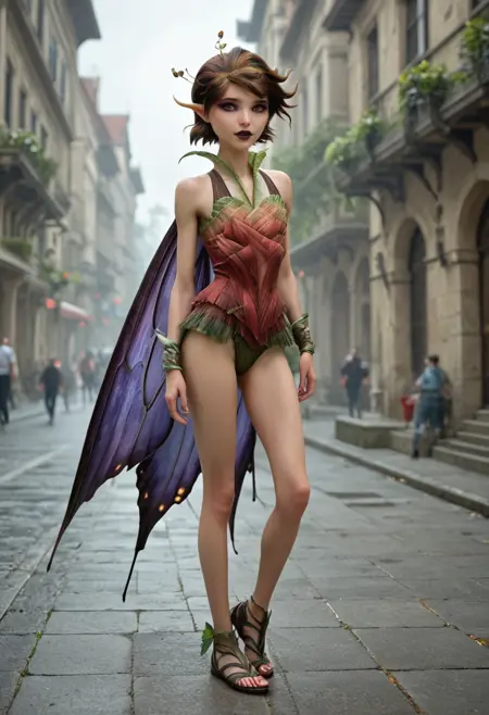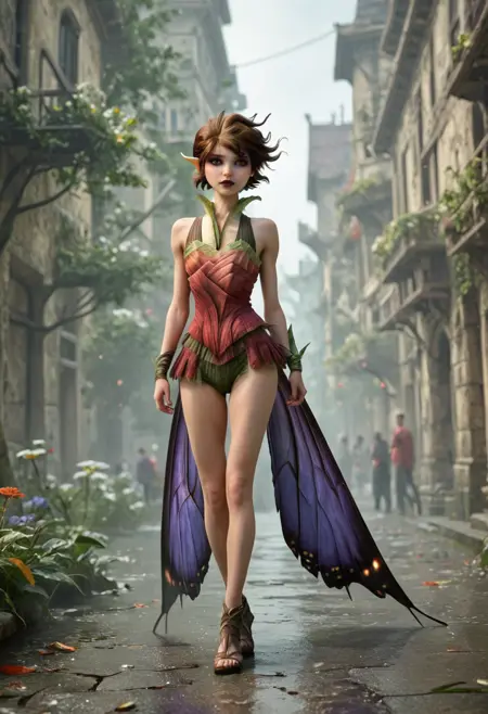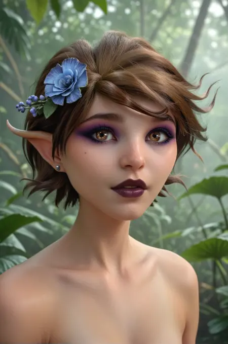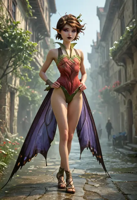基础:玛丽安,棕色头发,棕色眼睛,仙子,小仙子,短发,尖耳朵,深色口红,蝴蝶翅膀,紫色翅膀,
