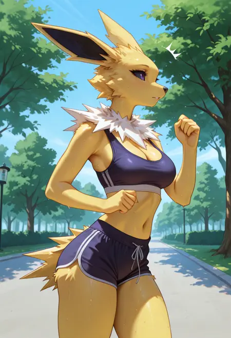 注意: 在生成雄性Jolteon时,由于训练数据以女性为主,即使添加了雄性标签,仍可能生成雌性。可通过添加“pecs”或其他雄性标签来修正,例如:肌肉雄性、((male))、(1boy)、瘦削雄性等……