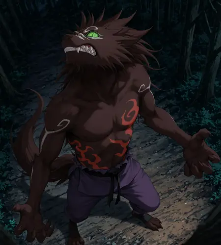 오래된 애니메이션 《케카이시》에 등장하는 시시오 겐의 아야카시 형태입니다. 이는 그의 인간 형태를 포함하지 않습니다. 그의 완전한 아야카시 형태는 불행히도 몇 에피소드에만 등장했으며, 오래된 애니메이션이라 화질이 낮습니다. 눈, 손, 발, 문양이 다소 거칠며, 더 나은 결과를 얻기 위해 프롬프트 수정이나 추가적인 품질 LoRA가 필요합니다. 프롬프트 가이드를 위해 예시를 확인하세요.