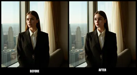 • 细节优化与对比:通过专用细节增强节点精细调整面部,确保皮肤纹理及其他细微特征得以保留。