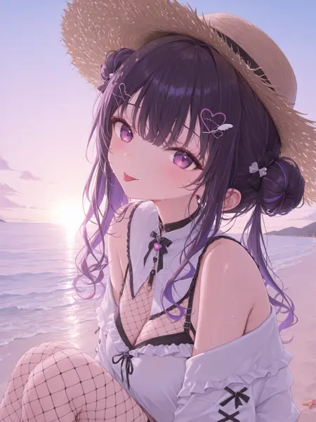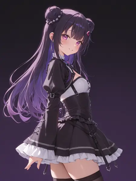 프롬프트에 {narin_mikure, 더블 버ン, 보라색 머리}를 반드시 포함해야 합니다.