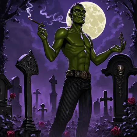 また、彼はすべての死体が地中で腐敗することを保証し、誰かの魂がゾンビとして復活することを防ぐ。彼が代償として求めるものは、気分によって異なる。彼は信者たちが黒、白、紫の衣装を着たり、神聖な道具を使用したりすることに満足することもある;[出典が必要] 単に雪茄、ラム酒、ブラックコーヒー、焼きピーナッツ、パンといった小さな供物を望むこともある。しかし、バロンは時にはこの世界に移るためのヴードゥの儀式を必要とする。[出典が必要]