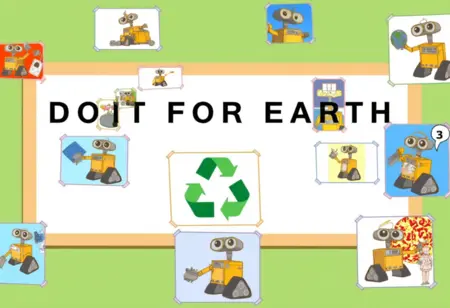 这是一幅卡通风格的数字绘画,包含多个(主体)的插画拼贴。背景是一面(颜色)的墙,中央有一个白色(颜色)区域,上面用粗体黑色字母写着“(文字)”。画板由一个(颜色)边框环绕。墙上装饰着许多插画,每幅都描绘了(主体/其他事物)。